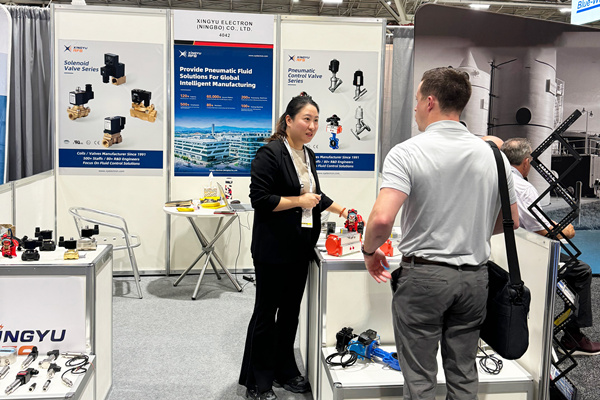 j9国际站备用网址电子携一系列与水质处理、污水处理和环保相关的气动、流体元器件,包括球阀、蝶阀、执行器、斜角阀、排水阀、电磁阀等,亮相本次国际盛会。j9国际站备用网址电子和展会观众进行技术交流和产品推介,为用户提供更优质的服务,展会现场有专业人员进行产品讲解,与全球各地的客户进行深入的交流与合作。
