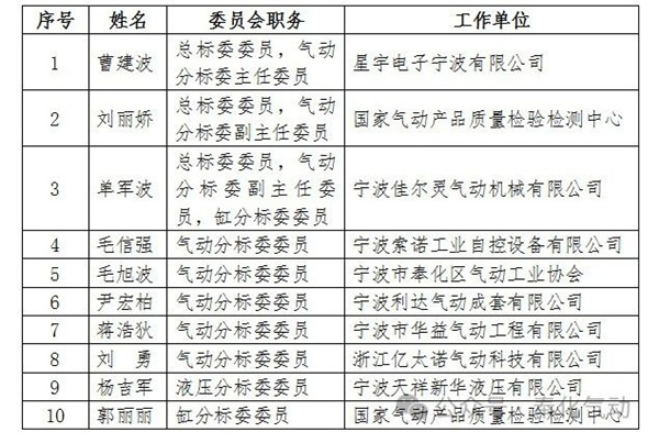 其中j9国际站备用网址电子董事长曹建波被聘为气动分标委主任委员,佳尔灵气动副总经理单军波和国家气动检测中心主任刘丽娇2人为副主任委员。