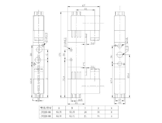 接管口径 | 进气=出气=1/4” 排气=1/8” |
