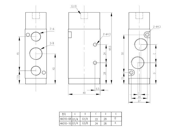 接管口径 | 进气=出去=3/8" 排气=1/4" |