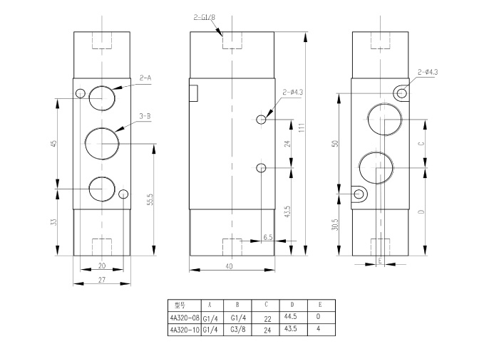 接管口径 | 进气=出去=3/8" 排气=1/4" |