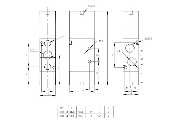 接管口径 | 进气=出去=1/4” 排气=1/8" |