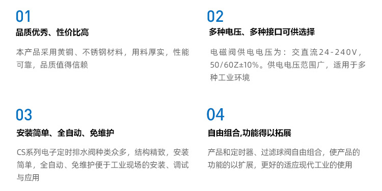 CS720系列铜制带电子定时器过滤排水阀,适用于多种场合的冷凝水自动排放及自动灌溉系统。