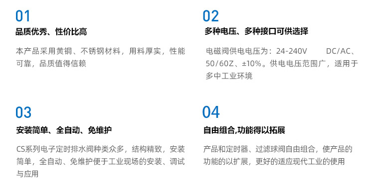 CS720系列不锈钢阀体电子定时器排水阀,适用于多种场合的冷凝水自动排放及自动灌溉系统,有多种电压接口可选,间隔时间和工作时间可调。