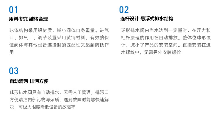 铝制浮球杆杆式球形排水阀,可自动排水无需人工管理和其他功能,整体位球体设计减小了产品的安装空间,阀体可以直接安装在进水螺纹上,无需另外安装螺栓。