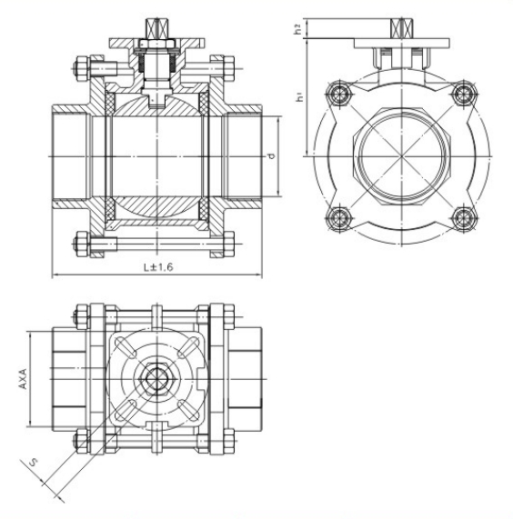 型号 | 接口螺纹 | DN | D | L | h1 | h2 | ISO5211 | A | S | 执行器 | |