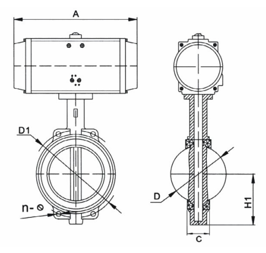 型号 | 接口螺纹 | D | D1 | H1 | A | C | n-d | 执行器 | |
