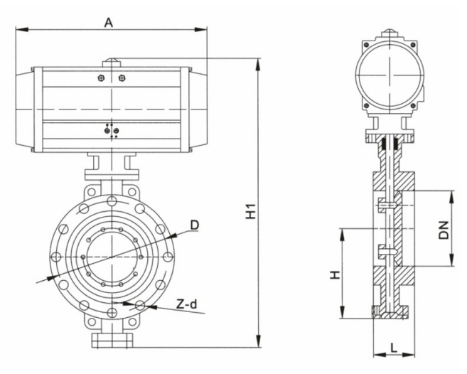型 号 | 公称通经 (英寸) | L | D | D1 | H | H1 | H2 | A | Z-d | 执行器 | ||
