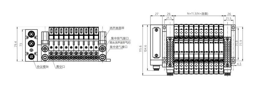 排气接口 | 08号快插接头/10号快插接头/双侧消音器直排 | |